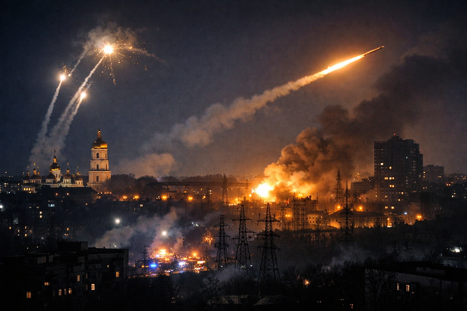Киев, 11 януари 2026 г. — Войната между Русия и Украйна навлезе в нова фаза на ескалация, след като през последните часове руските сили извършиха масирана ракетна и дронова атака срещу украински градове и ключова инфраструктура. Най-тежко засегната е столицата Киев, където значителни райони останаха без електричество, отопление и вода в разгара на зимата.